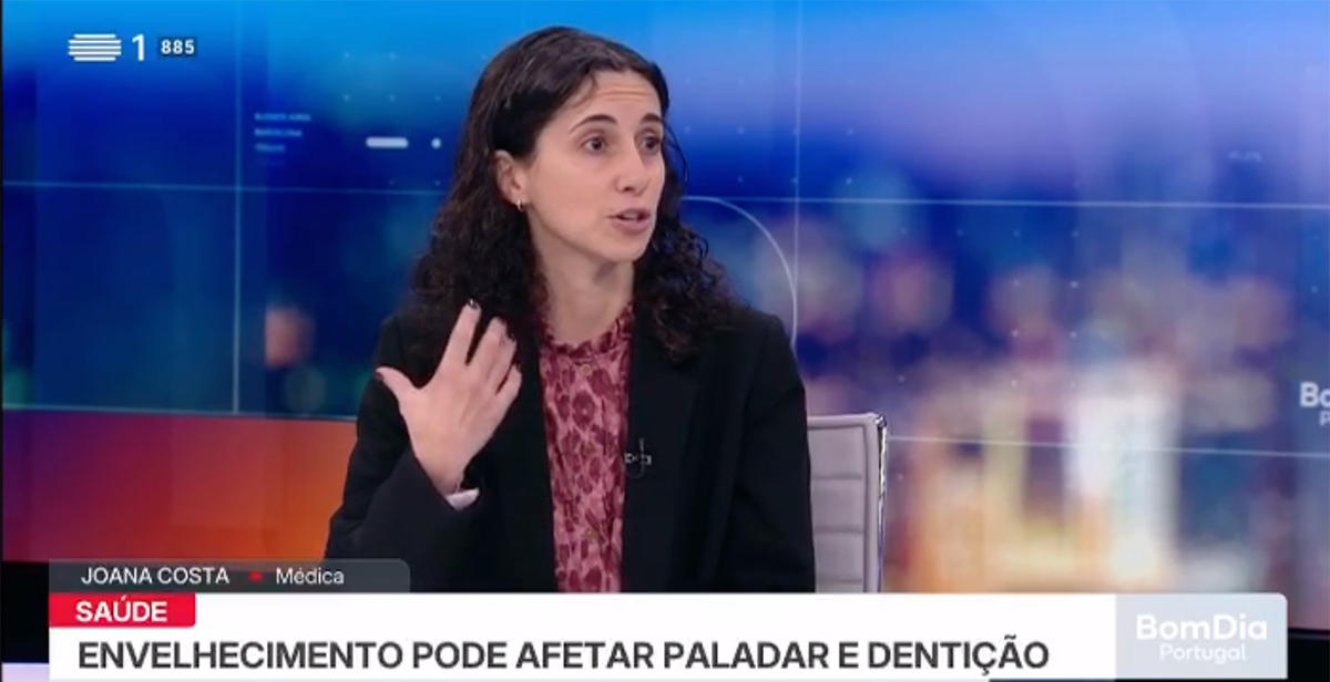 A Prof. Dr.ª Joana Costa, médica dentista da nossa clínica, esteve recentemente no programa Bom Dia Portugal (RTP1) para esclarecer um tema muito importante e frequentemente esquecido: o impacto do envelhecimento no paladar e na saúde oral.